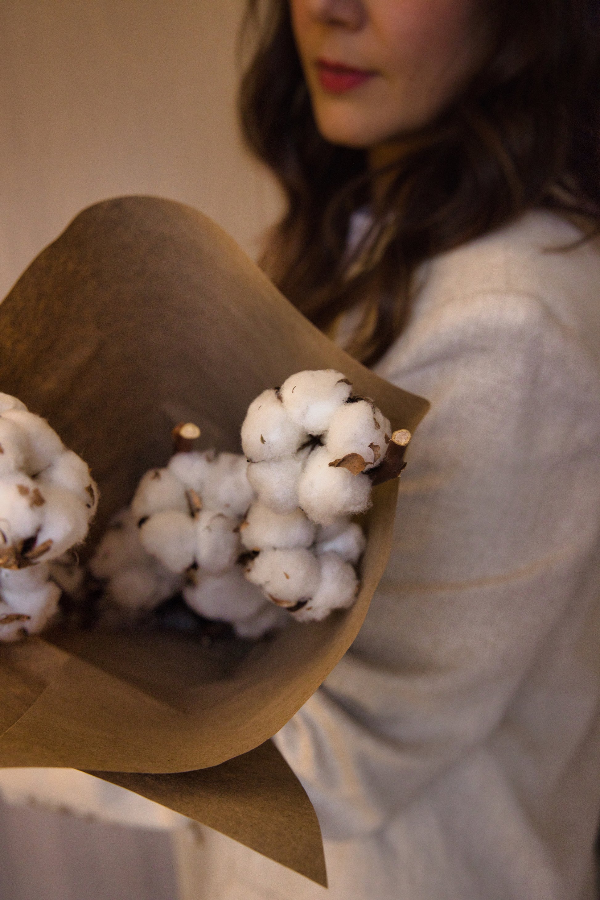 On a littéralement un coup de coeur pour les tiges de fleurs de coton. On en veut partout!